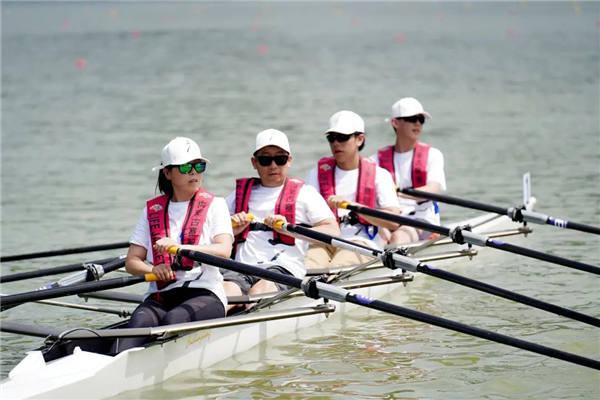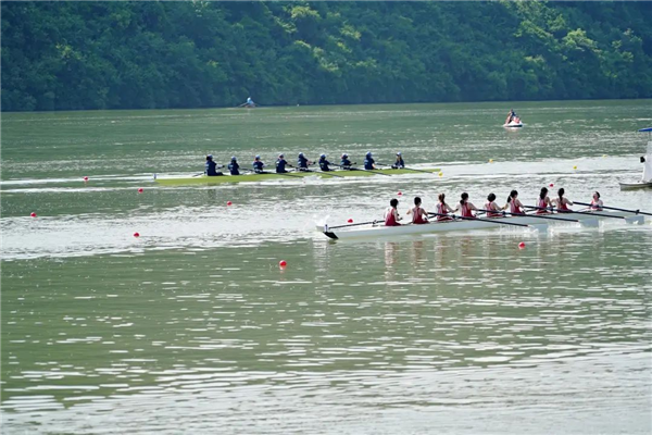 隨著鳴笛聲響起,參賽選手們奮力劃槳,艘艘劃艇飛速駛出,劈波斬浪,盡顯水上運(yùn)動(dòng)的獨(dú)特魅力。