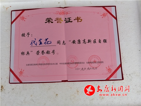 筆者從陳斌口中得知,2019年6月,代全花分別被安康高新區(qū)和五檔村黨支部、村委會授予“自強(qiáng)標(biāo)兵”和“自主創(chuàng)業(yè)模范”榮譽(yù)稱號,去年一家成功實(shí)現(xiàn)了脫貧。?