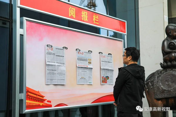 日前,在安康高新區(qū)的市民廣場、政務(wù)中心、公園綠地、大眾餐廳、居民社區(qū)等人口密集區(qū)域,承擔(dān)著“黨報(bào)指引方向,閱讀增添力量”宣傳教育功能的一個(gè)個(gè)“閱報(bào)欄”,讓廣大市民在享受物質(zhì)生活的同時(shí)更具精神追求,成為創(chuàng)建全國文明城市中一道道亮麗的風(fēng)景。