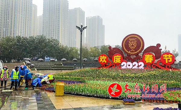 本網(wǎng)訊(記者 李俊 通訊員 張婷)1月28日,2022年第一場(chǎng)瑞雪悄然而至,整個(gè)安康宛如童話(huà)里的世界。紛飛的大雪中,安康高新區(qū)各道路景觀(guān)處都能看到一群身影正在為扮靚這座城市喜迎春節(jié)而忙碌著。