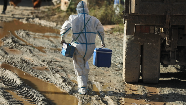 “遇到最大的困難是時常都是路況不好,路上常常塵土飛揚(yáng)、霧天視線不清,尤其是遇到下雨天的陡坡泥濘路面最擔(dān)心,擔(dān)心路不好走的危險,更擔(dān)心耽誤了測核酸的進(jìn)程。有時候要反復(fù)試幾十遍,才好不容易上去,這樣就會耽擱采樣時間,我們內(nèi)心也很焦急,但是沒辦法,因?yàn)樯铰凡缓米?,路途常常都是幾十公里,就這樣每天幾乎都是從天明到黑夜。”