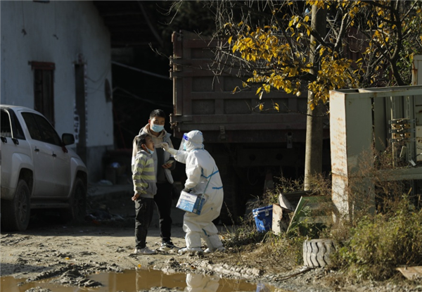 11月25日中午,忙完第一輪核酸采集,再接到流調(diào)通知單后,王康又立馬帶著他的“小伙伴”前往三里社區(qū)為居家隔離人員做核酸檢測,溝深路滑,因前幾日陰雨天氣路面濕滑,在上一處陡坡時,車輪瞬間開始側(cè)滑,但是時間緊迫只能一試再試,大概試了20余次,在村上壓路車的幫助下,又試了兩次車子終于緩緩啟動。喜悅之余他們就即刻趕往隔離群眾家中,“我們快一點(diǎn),再快一點(diǎn),就能讓等待的人少受一點(diǎn)冷”,這是“大白”們共同的心愿。