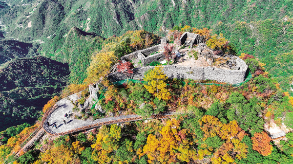 全勝寨位于我市嵐皋縣民主鎮(zhèn),是一個隱于群山、建于絕壁之上、保存完整的古山寨群落。古寨遺存的多處石砌城墻和戰(zhàn)壕錯落有致,延綿數(shù)公里,為秦巴山區(qū)所罕見。據(jù)當(dāng)?shù)厥分居涊d,此寨始建于明末,是當(dāng)?shù)孛癖姙槎惚軕?zhàn)亂而建。因山寨抵御多次外來侵?jǐn)_,屢獲全勝,故名“全勝寨”。這里平均海拔1300至1500米,是陜西省第七批文物保護(hù)單位,也是目前我省保存較為完好、歷史戰(zhàn)績輝煌的寨堡,同時也是重要的革命歷史舊址。對于研究明、清、民國時期嵐皋歷史文化和寨堡建筑具有重要價值。(袁法 攝)