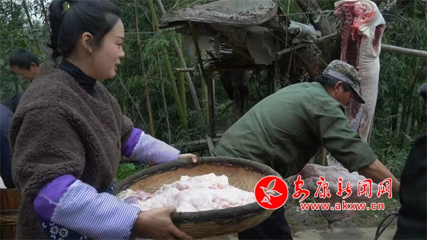 就這樣,抖音號“菲兒姑娘”出發(fā)啦。她平時(shí)負(fù)責(zé)策劃及出鏡。在2023年2月9日的采訪中,楊菲對華商報(bào)記者說:“我們的視頻一般是從食材的選取開始拍,比如炒臘腸,每個(gè)產(chǎn)品都是經(jīng)過精挑細(xì)選,也都是選取當(dāng)?shù)剞r(nóng)戶自己養(yǎng)殖的豬,整個(gè)制作過程也都會拍進(jìn)視頻里,就會不斷有粉絲朋友詢問購買臘腸、臘肉。”2022年11月份,僅用半個(gè)月時(shí)間該賬號幫村民賣完了5000余斤豬肉,還有不少客戶已經(jīng)在預(yù)定明年的臘肉,這讓附近的農(nóng)戶信心倍增。