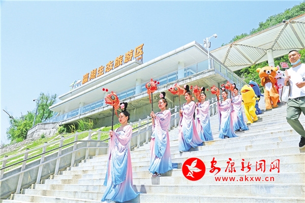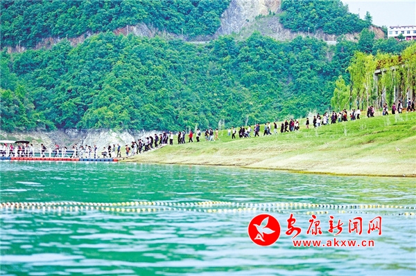 休閑勝地翠屏島,最大的亮點是玉清橋的彩虹瀑布,游客從橋下經(jīng)過,感受“瀛湖之水天上來”的曼妙,這也是瀛湖為游客送上的初夏第一絲清涼。橋頭幸福的天梯、鳥巢,成為排隊拍照的絕佳點位。運動場上,滾鐵環(huán)、射箭、投壺、打籃球,讓游客流連忘返。兒童樂園旁,微型爆米花機勾起了孩子們參與的興趣,彩繪激發(fā)了孩子們的繪畫熱情。瀛湖水上嘉年華,精彩刺激的水上項目帶給游客酣暢的體驗,游客紛紛直呼“過癮”!