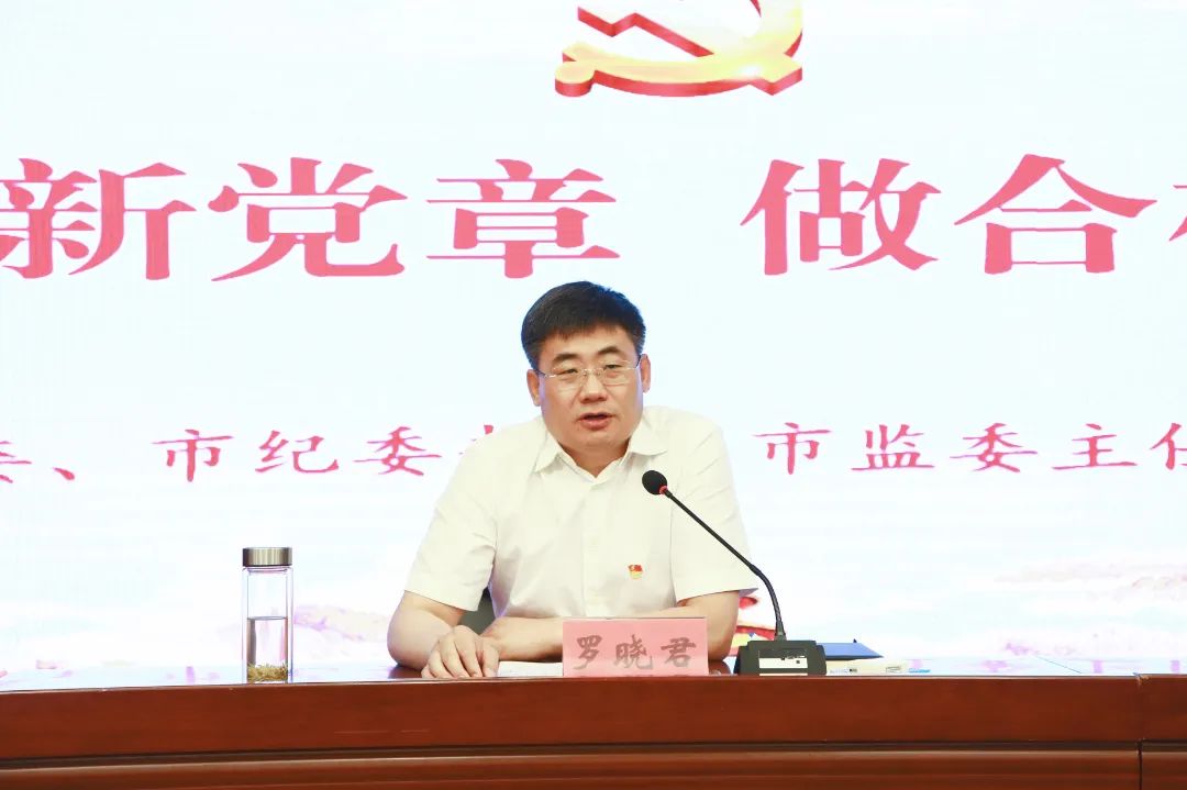 按照全市紀(jì)檢監(jiān)察干部隊伍整頓工作安排,6月27日,市委常委、市紀(jì)委書記、監(jiān)委主任羅曉君以《學(xué)好新黨章 做合格黨員》為題,為市紀(jì)委監(jiān)委機(jī)關(guān)、派駐機(jī)構(gòu)紀(jì)檢監(jiān)察干部和巡察機(jī)構(gòu)干部講專題黨課。省紀(jì)委監(jiān)委第七督導(dǎo)組到會指導(dǎo)。