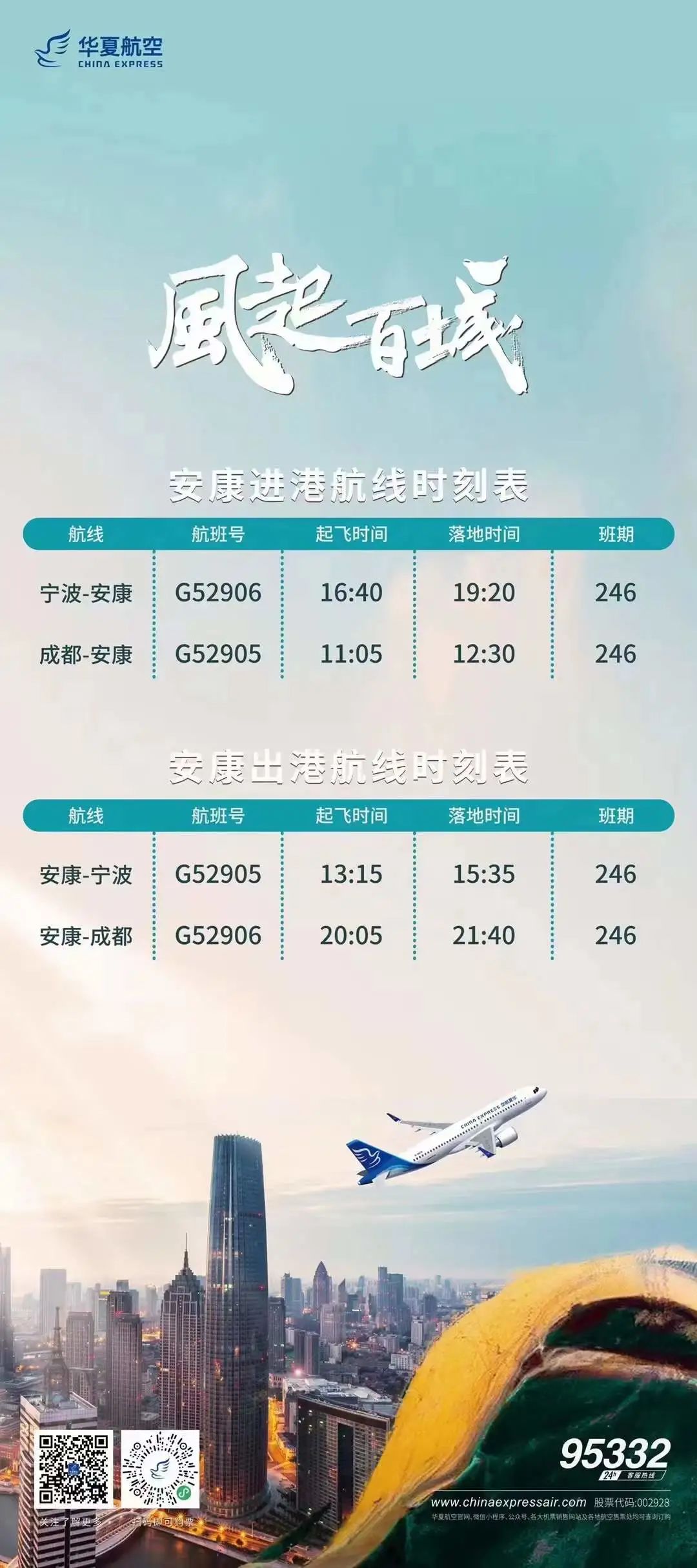 8月2日,據(jù)安康富強機場消息,8月15日起,安康將開通成都-安康-寧波航線,具體航班信息如下圖: