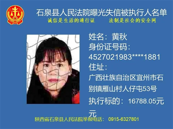 為了進(jìn)一步加大執(zhí)行力度,保障勝訴當(dāng)事人的合法權(quán)益,推進(jìn)社會(huì)誠(chéng)信體系建設(shè),依照《中華人民共和國(guó)民事訴訟法》《最高人民法院關(guān)于公布失信被執(zhí)行人名單信息的若干規(guī)定》等法律、司法解釋的有關(guān)規(guī)定,現(xiàn)對(duì)一批已進(jìn)入執(zhí)行程序,且尚未全部履行義務(wù)的被執(zhí)行人進(jìn)行媒體曝光,歡迎廣大群眾支持石泉縣人民法院的工作,向我院提供被執(zhí)行人的財(cái)產(chǎn)線索,使生效法律文書能夠得到切實(shí)執(zhí)行,讓人民群眾切實(shí)感受到公平正義就在身邊。
