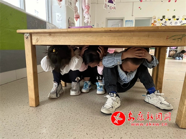 隨著室內(nèi)避震警報響起,防震演練正式開始,老師們迅速啟動《防震疏散演練應(yīng)急預(yù)案》,各班教師立即引導(dǎo)幼兒盡量躲避在室內(nèi)墻根、墻角或床、桌等相對堅硬的家具與三角區(qū)避震空間避險,引導(dǎo)幼兒身體彎曲,降低身體重心,盡最大努力保護(hù)好頭部。逃生疏散中老師不斷提醒幼兒們不要擁擠,手保護(hù)頭部、彎腰,迅速且有序沿著指定疏散路線撤離到安全區(qū)域,同時檢查是否有掉隊的孩子,確保每位幼兒安全撤離。