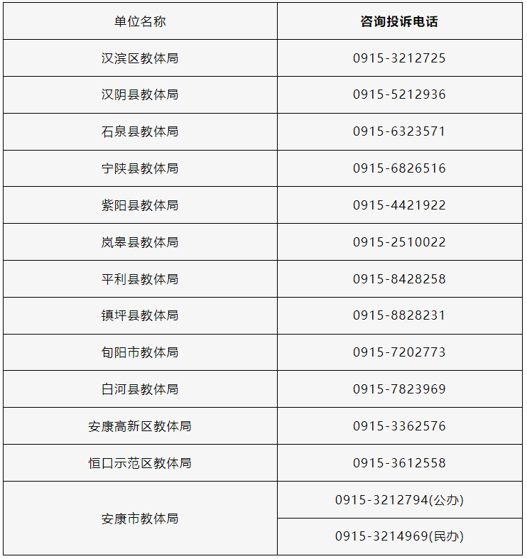 2.2024年安康市義務(wù)教育招生入學(xué)工作咨詢(xún)投訴電話(huà)