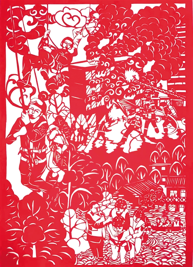 2022年,張莉的剪紙作品在“我與火焰藍(lán)”安康消防授旗訓(xùn)詞三周年風(fēng)采繪畫大賽中,榮獲“成人組優(yōu)秀作品獎”,并被主辦方收藏。2023年張莉帶隊參加“德潤安康”安康市首屆校園科技藝術(shù)節(jié),在剪紙區(qū),小隊員們發(fā)揮巧思妙想,精心設(shè)計、細(xì)心折剪,只見刀尖一開一合,紅紙不斷翻轉(zhuǎn),一幅幅栩栩如生、惟妙惟肖的作品就讓觀眾親眼見證了“刀光剪影”的神奇。隊員們嫻熟的技藝,精美的作品迅速吸引了許多人駐足參觀。