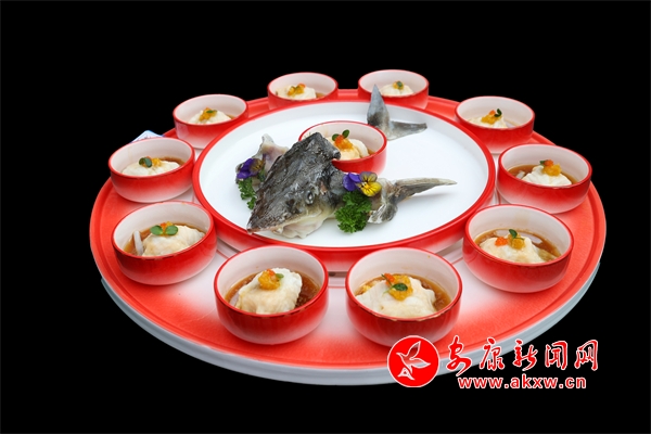 “陜南淡水魚餐飲暨‘贛義鑫杯’烹飪技能大賽”是張顯峰走出去學(xué)習(xí)交流檢驗(yàn)自己菜品研究成果的平臺。在準(zhǔn)備本次比賽菜品時,他選用了紫陽縣最好的食材“富硒鱘魚”、花鰱魚,土黑豬五花肉及羊肚菌等蔬菜,精心制作了兩道菜品,第一道菜品是紫陽茶香宴中的主菜——茶香鱘龍。這道菜擺盤高雅,肉質(zhì)細(xì)膩,口味鮮美,茶香與淡水魚的完美結(jié)合,讓人仿佛置身于清新的茶山之間,品味著大自然的饋贈。