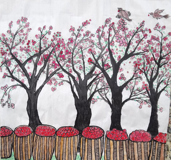 學(xué)校國(guó)畫社團(tuán)的孩子們,經(jīng)過兩天的緊張培訓(xùn)、繪制草圖、精心創(chuàng)作,十余名學(xué)生畫出了美麗鄉(xiāng)村的豐收?qǐng)鼍?,畫出了孩子們美好生活的快樂情趣,也畫出了漢調(diào)二黃戲劇人物水墨畫印象,從多角度贊美了美麗家園、幸福安康。在安康兒童美育專家宋安平和鄭字堂、王彬等老師的精心輔導(dǎo)下,孩子們的國(guó)畫作品,將選送參加中央美術(shù)學(xué)院少兒美術(shù)研究中心主辦的展覽。