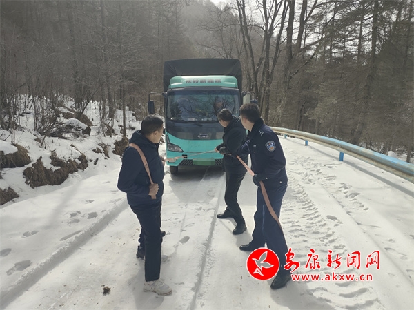 2月19日12時(shí)許,寧陜縣公安局龍王派出所值班民警接到救援電話:有一輛貨車駕駛到太山廟鎮(zhèn)太山村某路段被困,請(qǐng)求救助,接到電話后龍王派出所民輔警迅速趕往事發(fā)地。當(dāng)時(shí)大雪已經(jīng)下了一天,該路段因山路崎嶇坡陡,部分路面結(jié)冰打滑,民警克服天氣不利條件趕到現(xiàn)場(chǎng)。到現(xiàn)場(chǎng)后,民警看見(jiàn)一輛貨車被困在雪地中,民警查看現(xiàn)場(chǎng)環(huán)境后,利用攜帶鐵鍬、拖車?yán)K等救援物資迅速開(kāi)展工作,經(jīng)過(guò)2個(gè)多小時(shí)終于安全將被困車輛牽引至安全區(qū)域。