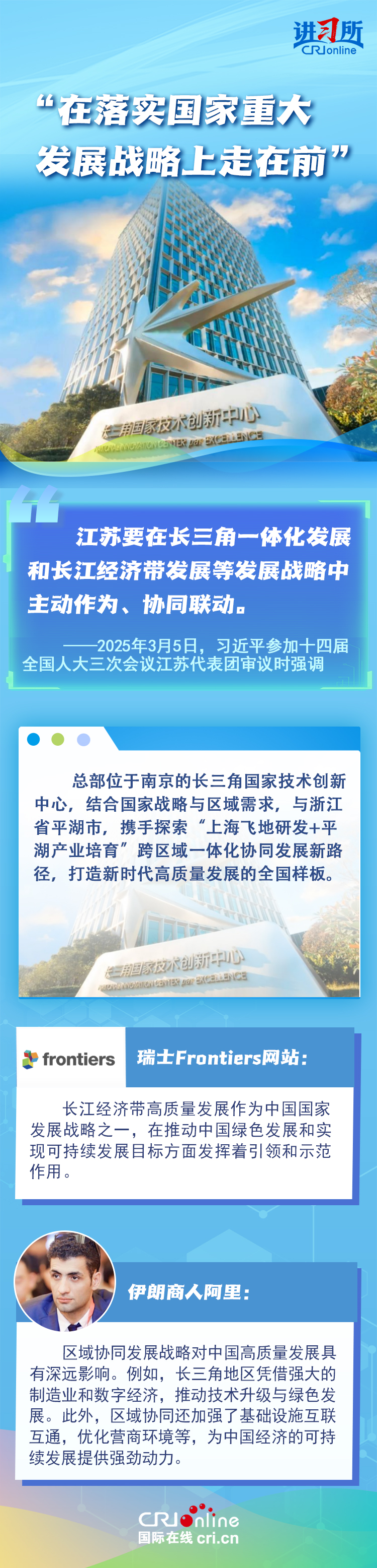 從紫金山實驗室的6G突破到蘇州工業(yè)園區(qū)的開放升級,從長三角協(xié)同創(chuàng)新到永聯(lián)村的共富實踐,江蘇在中國式現(xiàn)代化新實踐上已成為世界觀察中國高質(zhì)量發(fā)展的重要窗口。國際人士認為,中國因地制宜的創(chuàng)新發(fā)展之路有力推動了國家現(xiàn)代化進程與民生福祉提升。