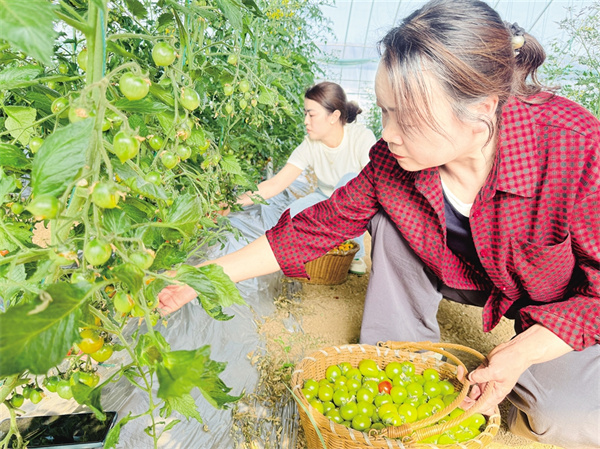 在分揀包裝區(qū),果農(nóng)們將圣女果按顏色、甜度分級包裝?!扒嗌鸲雀撸m合鮮食;紅色果酸甜適中,主要供應(yīng)餐飲店?!贝迕駝⒋蠼憬榻B,自己以前在外地務(wù)工,現(xiàn)在在家門口就能上班,每個月能掙3000多元。在歡樂采摘區(qū),游客們一邊采摘一邊拍照,發(fā)微信朋友圈展示觀光采摘的樂趣。