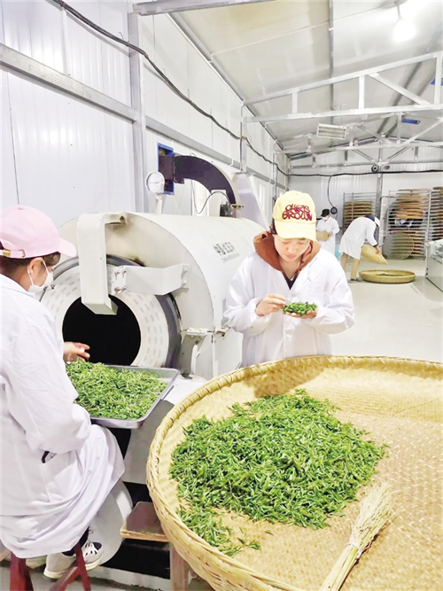 沿著九曲山路攀至絲鋪村五龍山,1200米的海拔高地,500畝生態(tài)茶園豁然舒展在眼前。茶農(nóng)們星羅棋布地穿梭在茶園,夏茶葉紛紛從茶樹間跌落。“高山茶回甘足,這片云海就是天然保鮮庫?!贝逯Р繒洸碳椅妮p捻茶葉,陣陣清香沁人心脾。旬陽五龍山農(nóng)民種植專業(yè)合作社負(fù)責(zé)人王志富打開茶廠卷簾門,生產(chǎn)線熱氣蒸騰?!叭ツ晡覀兪召徚?000公斤鮮葉,加工了1000公斤干茶,產(chǎn)值達(dá)到30萬元,輻射帶動周邊村民端穩(wěn)飯碗?!?/p>