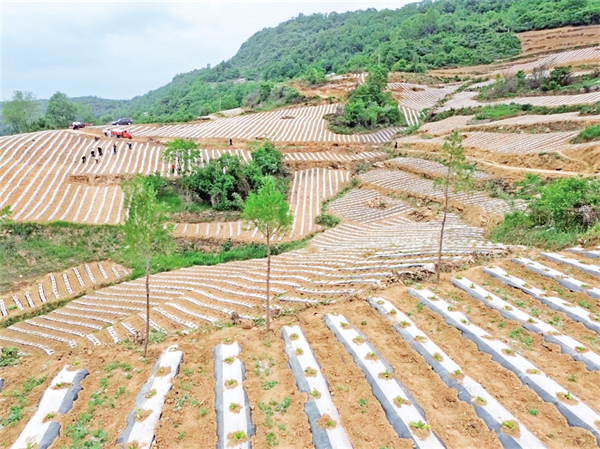離開錢河梁,走進(jìn)海棠寺村的梯田里,種煙大戶吳義剛正迎著晨曦帶上20余名村民搶墑移栽。23年的種煙歲月在他臉上刻下溝壑,也沉淀出“致富良經(jīng)”。他瞇著眼睛笑著說:“去年新種的80畝煙田毛收入24萬,今年爭取再多賺點,給孩子換臺好車?!碑?dāng)目光撫過嫩綠的煙苗,手掌摩擦著滴灌管道,吳義剛驀然間變得激動:“雖然今春干旱嚴(yán)重,但是政府配發(fā)的抗旱設(shè)備讓移栽成活率大大提升,我們的心血總算沒有白費?!贝逯Р繒泟⒌瞧巾斨胰账闫甬a(chǎn)業(yè)增收賬:“今年450畝煙田已基本栽完,11個大戶帶著小戶干,戶均增收能破萬元?!?/p>