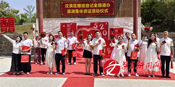 在做好窗口登記的同時(shí),漢濱區(qū)婚姻登記服務(wù)中心拓展服務(wù)形式,在瀛湖金螺島戶外頒證基地,開展“5·20新‘證’啟航,幸?!ㄞk’未來”集體頒證活動(dòng),邀請10對新人開展集體戶外頒證,在眾人的見證下宣讀愛情誓言,接受大家的祝福。