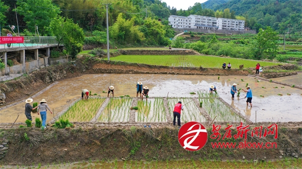 “我們在漁灣村麻莊組設立了水稻肥效對比試驗田,今天我們組織農(nóng)技人員和農(nóng)戶一起進行分區(qū)試驗,開展插秧工作,為水稻單產(chǎn)提升打造樣板田?!睂庩兛h農(nóng)業(yè)技術推廣站副站長袁年東介紹道。