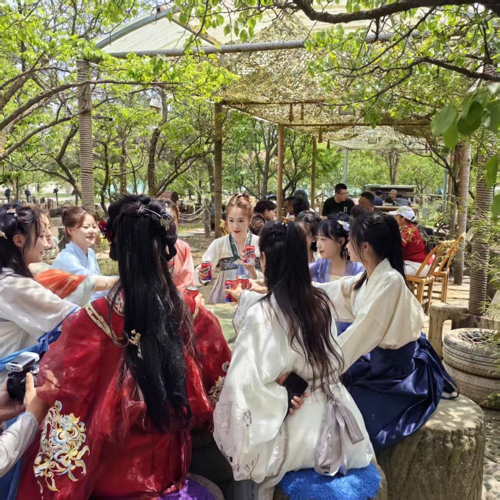 游客在巧媳婦莊園涼亭內(nèi)聊天、聚餐。(受訪者供圖)