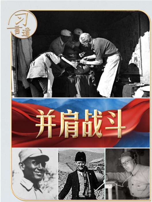 印度醫(yī)生柯棣華、法國醫(yī)生貝熙葉、德國人約翰·拉貝、丹麥人辛德貝格、英國人林邁可、國際主義戰(zhàn)士漢斯·希伯、蘇聯(lián)飛行大隊(duì)長庫里申科、美國“飛虎隊(duì)”......他們的事跡,習(xí)近平總書記曾多次動情講述??倳涍€在國內(nèi)外重要場合為曾幫助和支持中國抗戰(zhàn)的國際友人頒獎,向他們致敬。
