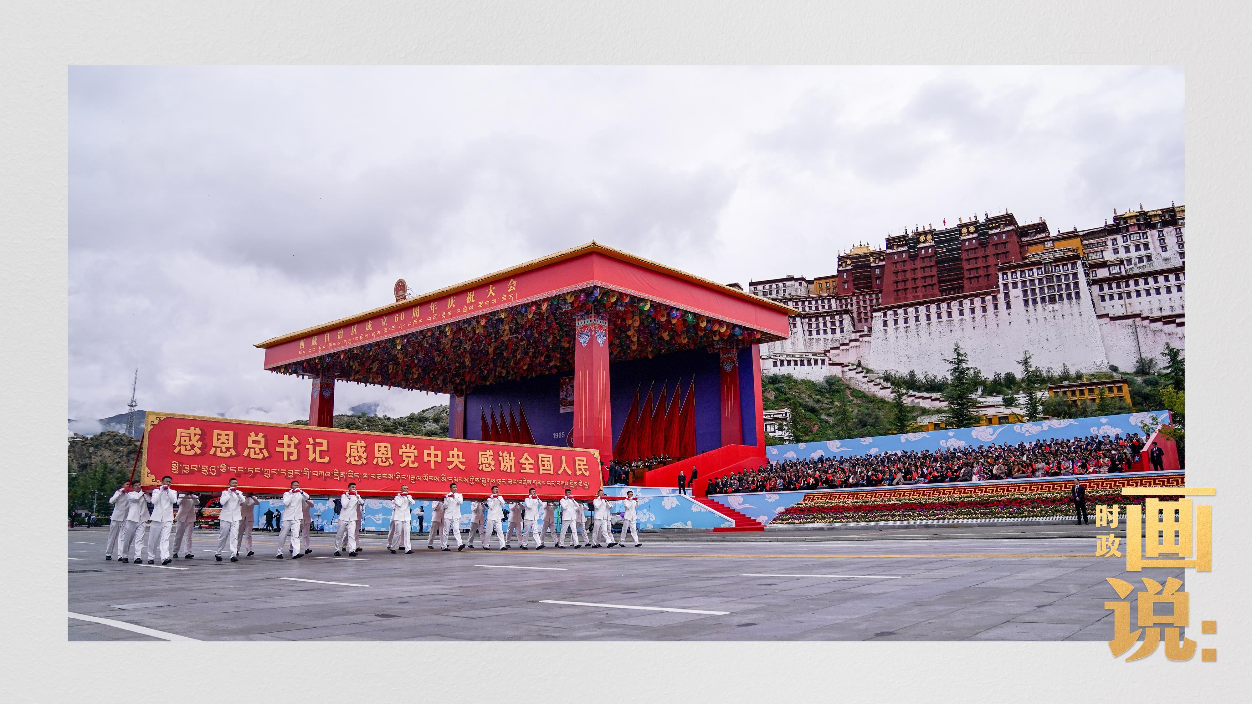 21日上午,習近平總書記在拉薩市布達拉宮廣場出席西藏自治區(qū)成立60周年慶祝大會,同西藏各族各界干部群眾約2萬人共同歡聚,熱烈慶祝西藏自治區(qū)成立60周年。