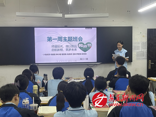 在主題班會上,各班以視頻短片和點滴故事再現(xiàn)了師生之間的感人瞬間,學(xué)校還通過LED亮燈、更換宣傳欄等方式,宣傳優(yōu)秀教師的奮斗足跡和崇高精神。學(xué)生會自發(fā)制作教師節(jié)宣傳視頻,并在廣播站播發(fā)致敬教師的文章,號召全體學(xué)生要尊重老師、感恩老師、理解老師,自立自強(qiáng)、充實學(xué)識、增強(qiáng)本領(lǐng),長大后回饋社會、報效國家。