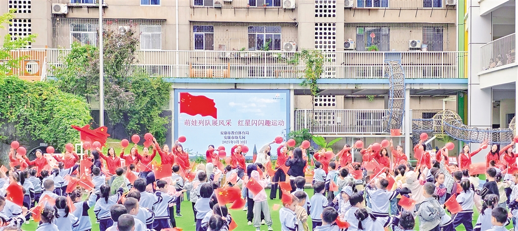 9月30日,安康市幼兒園舉辦“萌娃列隊(duì)展風(fēng)采 紅星閃閃趣運(yùn)動(dòng)”國(guó)慶主題活動(dòng)。 李生珍 攝