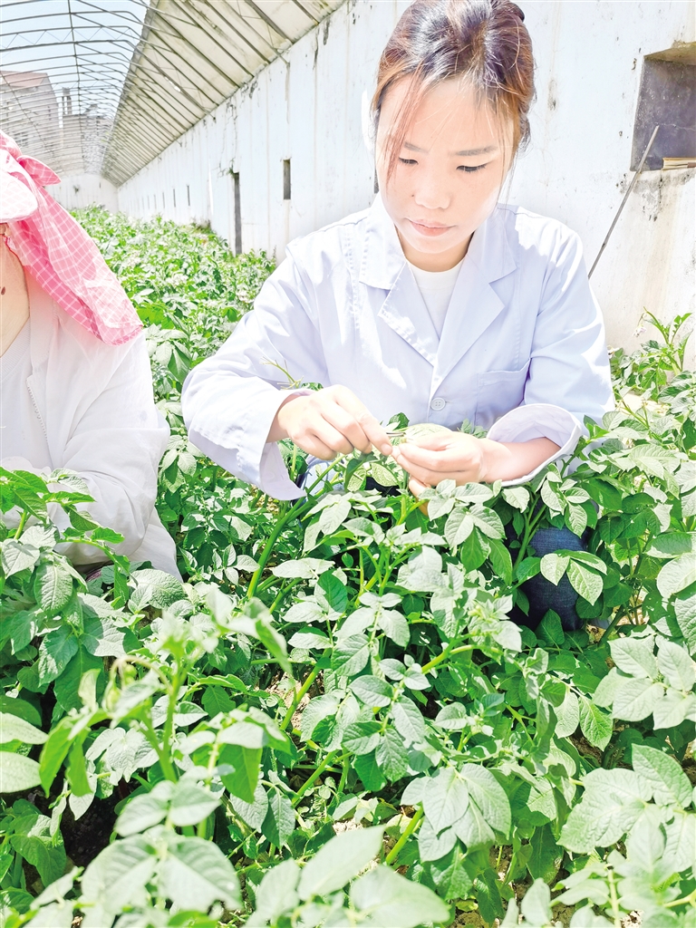 但更大的技術(shù)突破發(fā)生在實驗室和試驗田。在市農(nóng)業(yè)科學(xué)研究院的組培室內(nèi),科研人員正通過莖尖脫毒技術(shù),讓馬鈴薯實現(xiàn)“逆齡生長”。鄭敏告訴記者,團(tuán)隊目前引進(jìn)優(yōu)質(zhì)種質(zhì)資源20余個,雜交創(chuàng)制優(yōu)質(zhì)無性系材料百余份,篩選出中早熟優(yōu)系3個、中晚熟優(yōu)系8個并通過國家或省級區(qū)域試驗,形成了“研發(fā)一代、儲備一代、推廣一代”的良性循環(huán),構(gòu)建了完整的馬鈴薯種業(yè)創(chuàng)新體系。