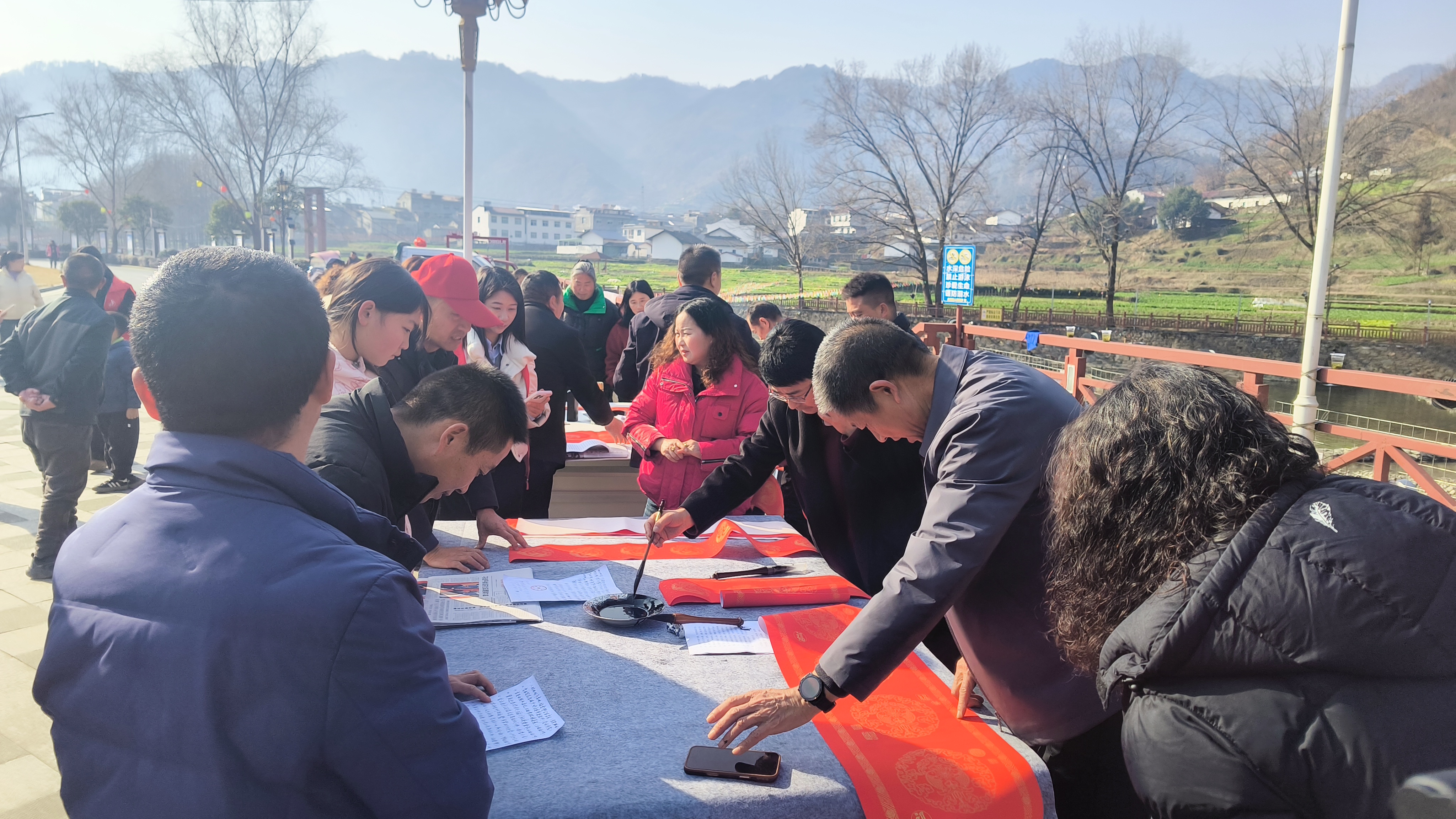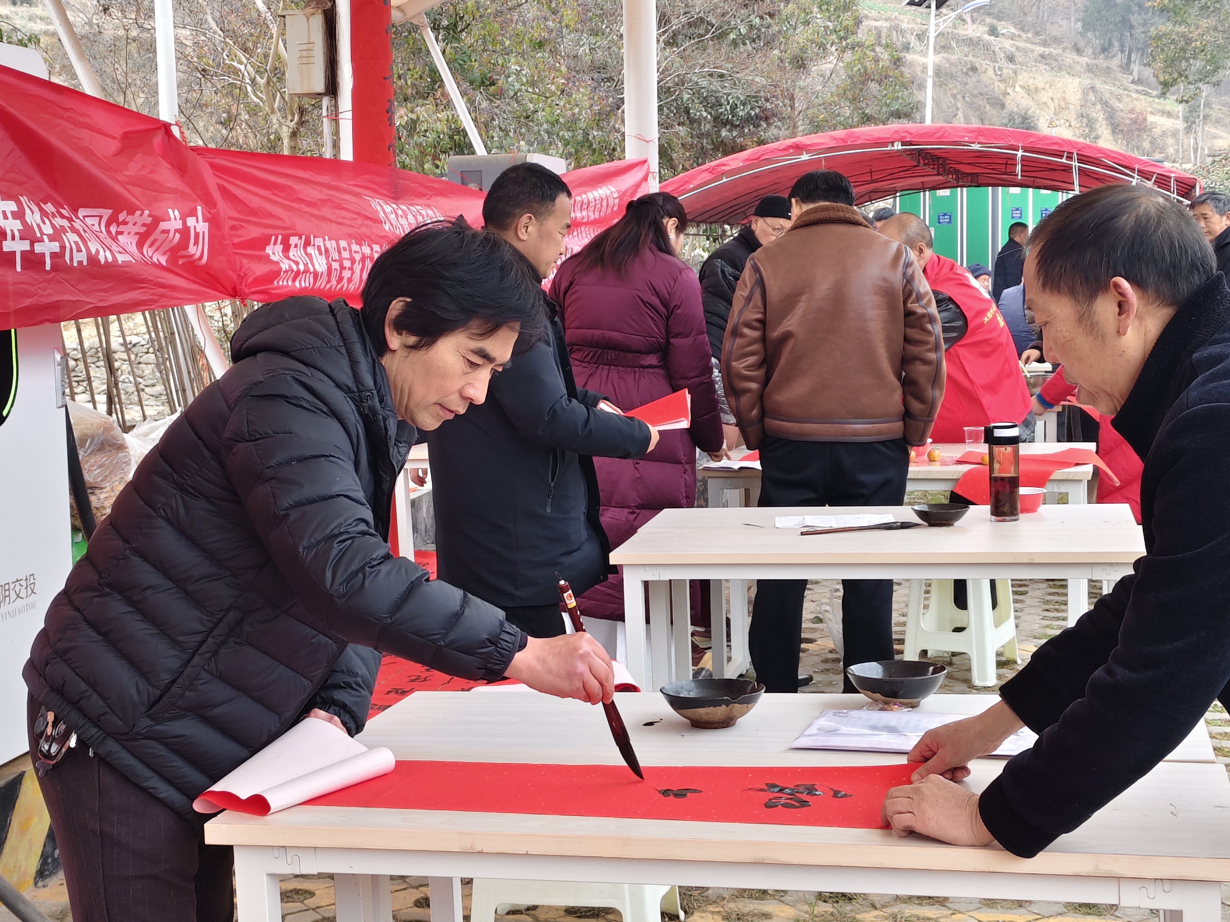 2月5日,平利縣文聯(lián)、書協(xié)聯(lián)合大貴鎮(zhèn)公共文化服務(wù)共同體分中心、新時代文明實踐所,在集鎮(zhèn)親水廣場開展義寫春聯(lián)活動,以翰墨傳遞新春祝福,用文化賦能文明實踐。 陳青青 攝