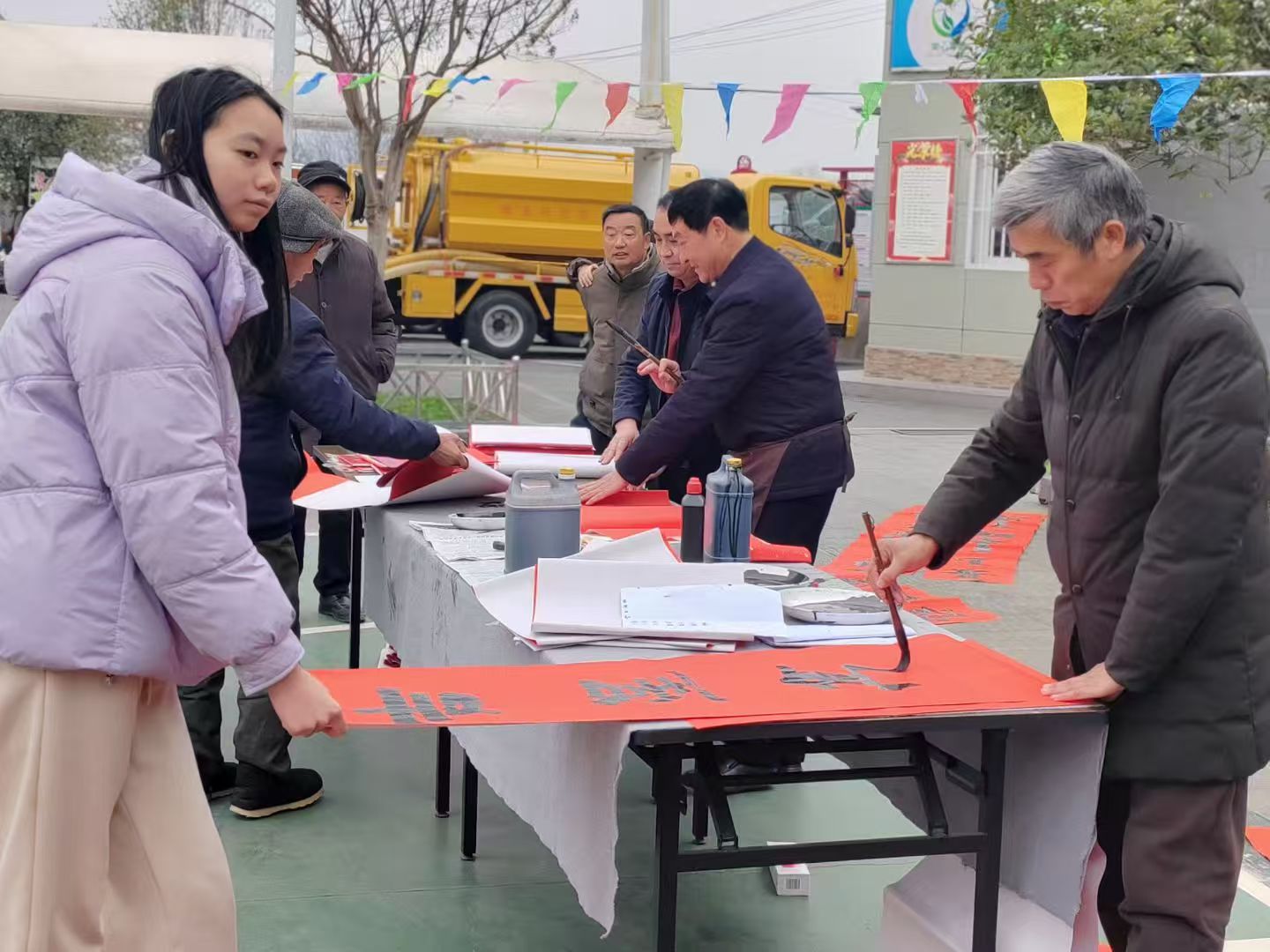 “村晚”現(xiàn)場還設(shè)置了新春惠民服務(wù)區(qū),成為一道溫暖的風(fēng)景線。鎮(zhèn)文化站邀請本土?xí)椰F(xiàn)場揮毫潑墨,免費為村民書寫春聯(lián)和福字,墨香四溢,紅紙映春,村民們有序排隊領(lǐng)取,把新春祝福帶回家。鄉(xiāng)村年貨展銷區(qū)人氣高漲,漢陰富硒糧油、土蜂蜜、臘肉、豆腐干等特色農(nóng)產(chǎn)品整齊擺放,駐村第一書記、村“兩委”干部化身“推銷員”,熱情推介本土好物,既方便村民置辦年貨,又拓寬農(nóng)產(chǎn)品銷售渠道,讓“村晚”既有文化味,更有煙火氣與增收實效。