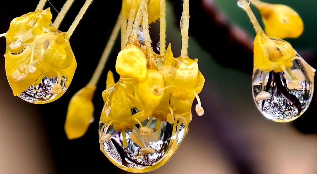 這是3月1日拍攝的河南省洛陽市街頭花朵上的雨珠。新華社發(fā)(高山岳攝)