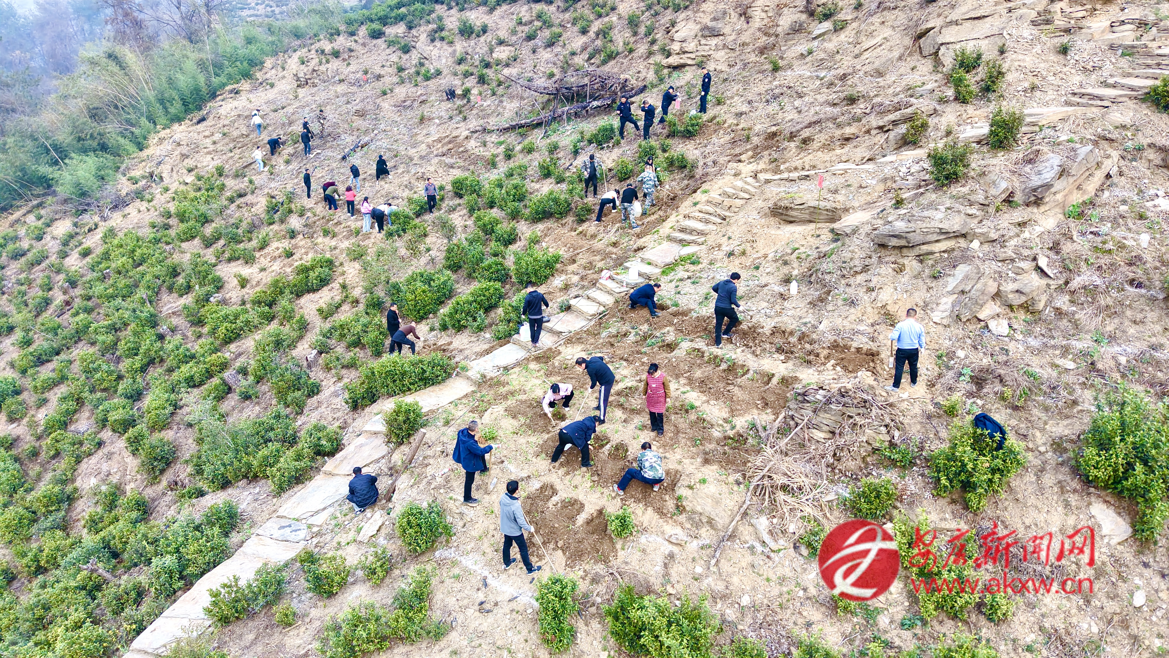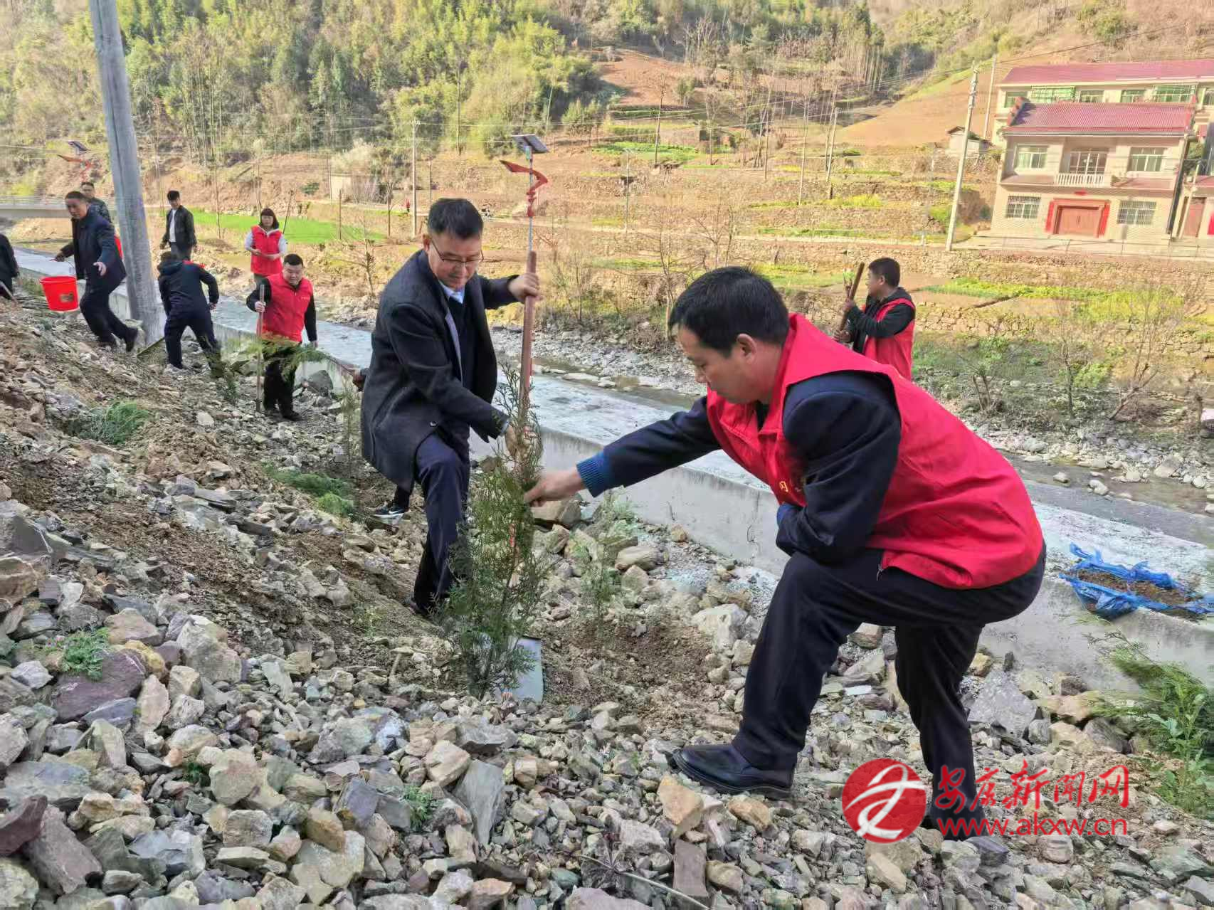 石門鎮(zhèn)組織鎮(zhèn)村干部、志愿者在樓房河村開展春季義務(wù)植樹活動