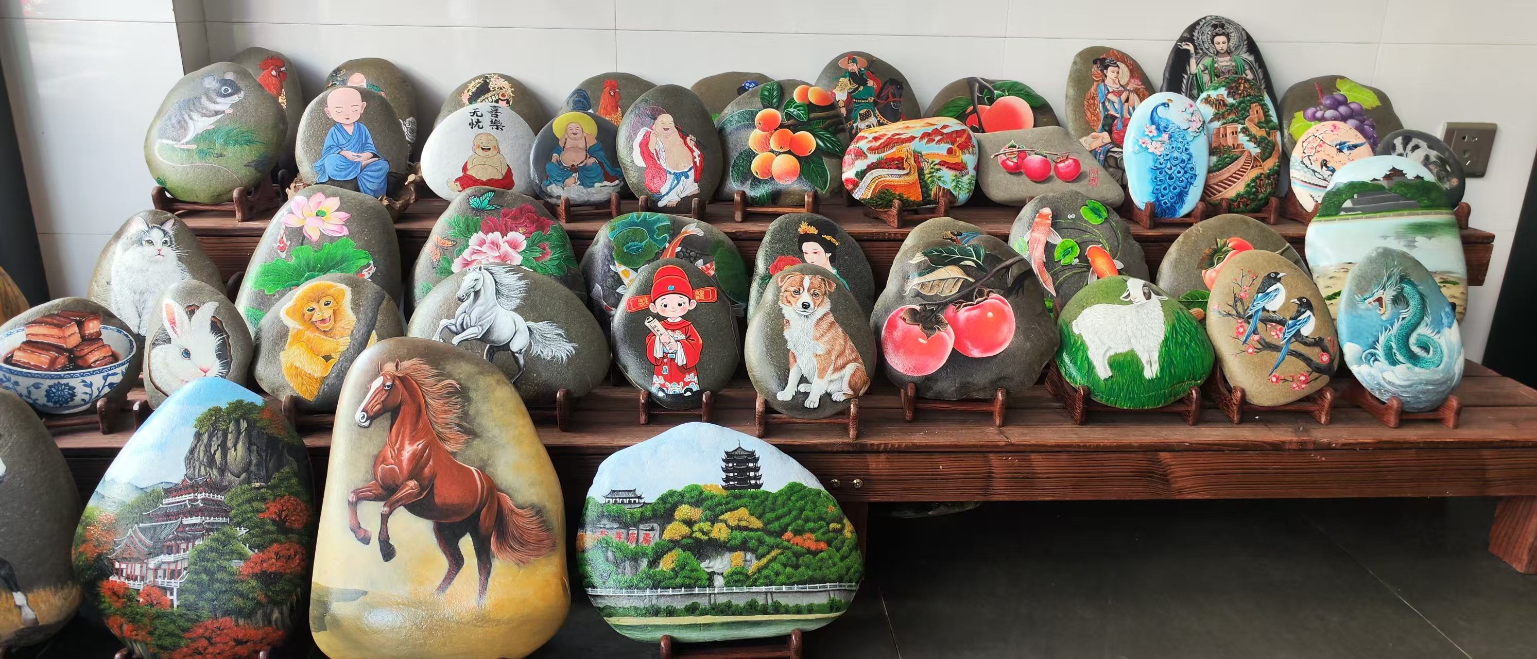 就在困頓迷茫之際,心底深藏著對繪畫的熱愛,成了照亮她前行的微光。為了排解病痛的折磨,也為了謀求一絲收入,李景麗重新拾起畫筆。起初只是在紙上作畫,一次偶然在網(wǎng)上看到石頭畫創(chuàng)作,她便萌生了嘗試的念頭。第一幅石頭畫,用的是母親壓菜缸的石頭,李景麗對著照片精心勾勒,成品出爐的那一刻,滿滿的成就感讓她重燃信心。從此,她便與漢江石相伴,每天除了吃飯睡覺,其余時間全都撲在繪畫上,山水畫、靜物、飛天神女……各類題材信手拈來,只需一張參考照片,她便能畫得惟妙惟肖。追求極致的她,總要耗時數(shù)天,直至畫作達到心中滿意的標(biāo)準(zhǔn)才肯停筆。繪畫,讓她暫時忘卻了病痛的苦楚與生活的憂愁,讓黯淡的日子重新有了溫度與希望。