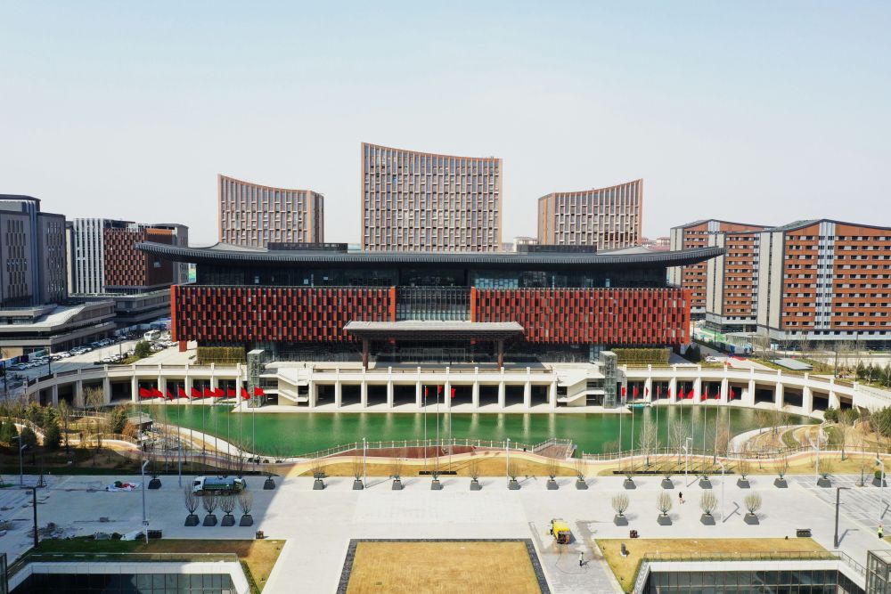 雄安商務(wù)服務(wù)中心是新區(qū)首個(gè)標(biāo)志性城市建筑群,建筑風(fēng)格以東方美學(xué)立體展現(xiàn)雄安特色風(fēng)貌,功能包括酒店、專家公寓、商業(yè)等。2022年底,該中心投入使用。通過綠色建筑技術(shù)的集成與創(chuàng)新,這里實(shí)現(xiàn)了綠建三星標(biāo)準(zhǔn)全覆蓋,項(xiàng)目預(yù)計(jì)每年可節(jié)約用電1100萬度。這是2022年3月28日拍攝的雄安商務(wù)服務(wù)中心。