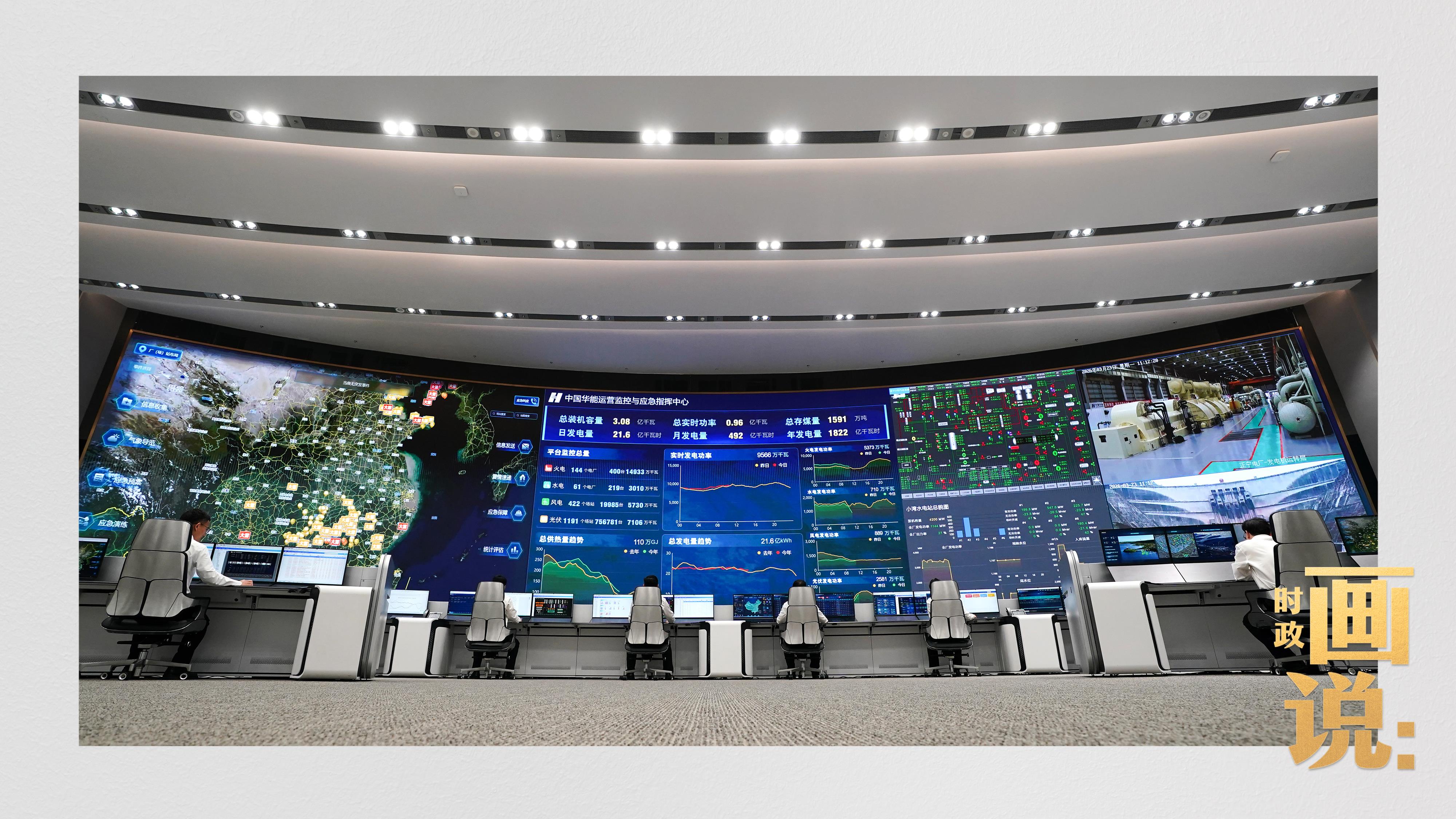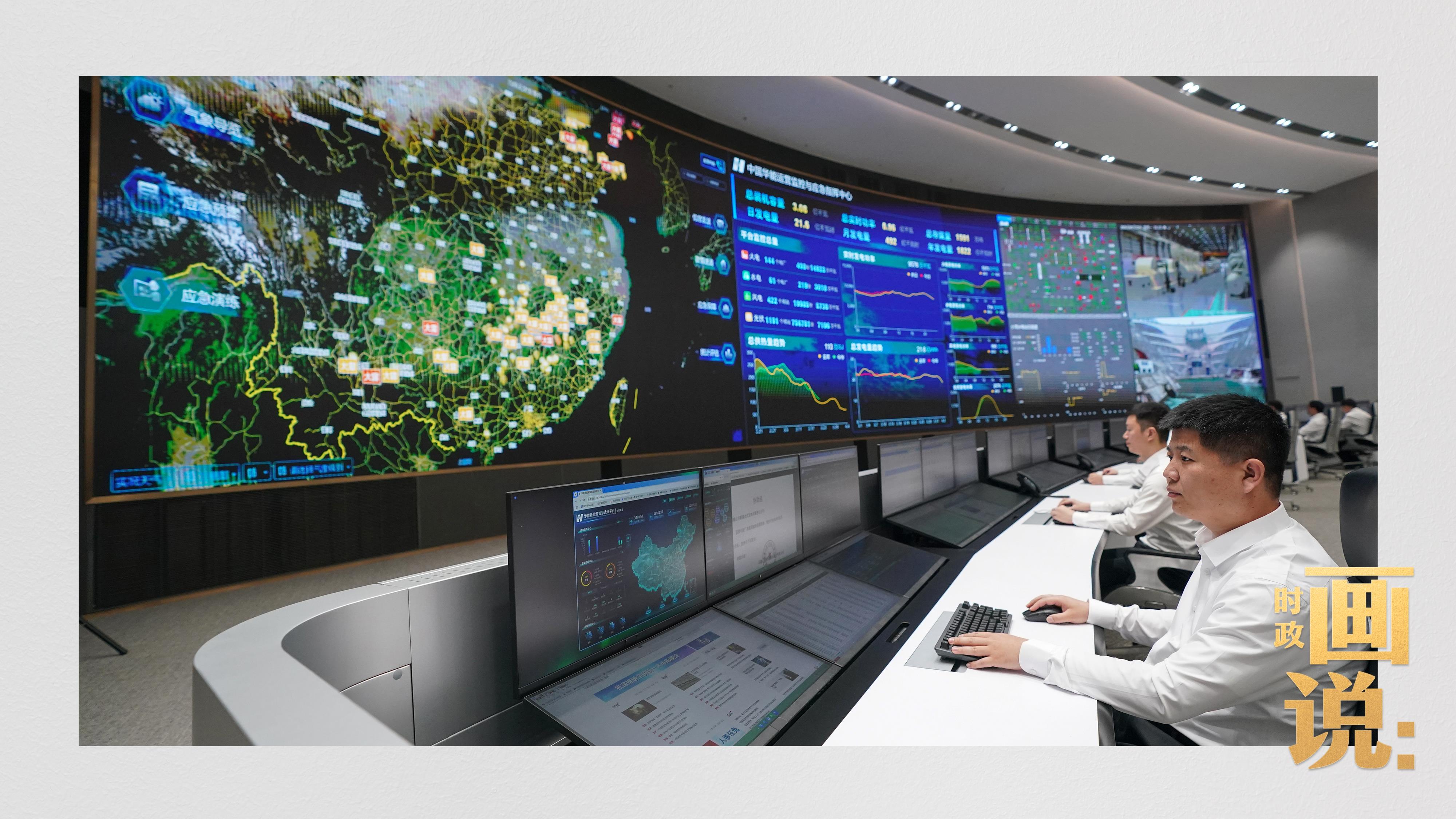 △中國華能運營監(jiān)控與應急指揮中心,工作人員正在忙碌