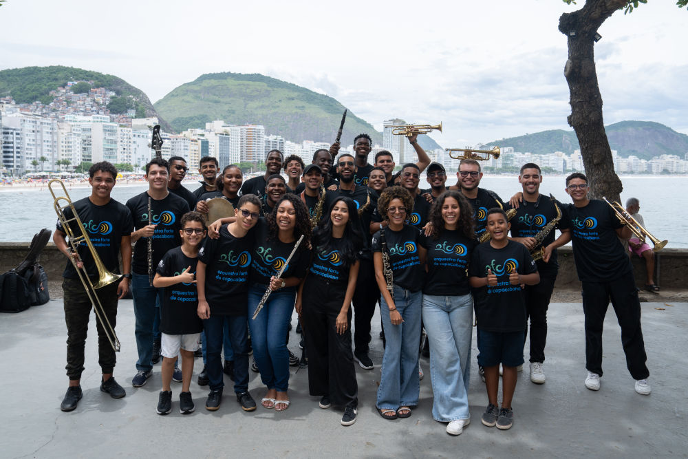 2024年12月14日,在巴西里約熱內(nèi)盧,參加排練的科帕卡巴納要塞樂團(tuán)成員合影。新華社記者 王天聰 攝