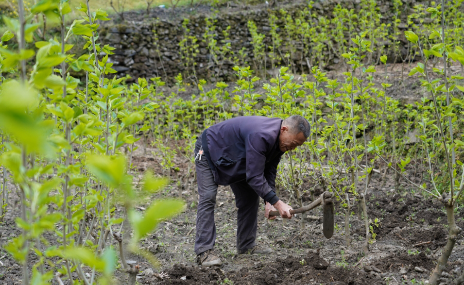 另一邊,在桐木鎮(zhèn)涌泉村桑園基地內(nèi),春蠶備養(yǎng)管護(hù)工作也在火熱推進(jìn)。蠶農(nóng)忙著疏芽、松土、施肥,將腐熟農(nóng)家肥均勻埋入桑根周圍,精心管護(hù)每一株桑樹,為春蠶備足優(yōu)質(zhì)“口糧”。在蠶農(nóng)眼中,這片桑園就是家里的“綠色銀行”,承載著增收的希望。