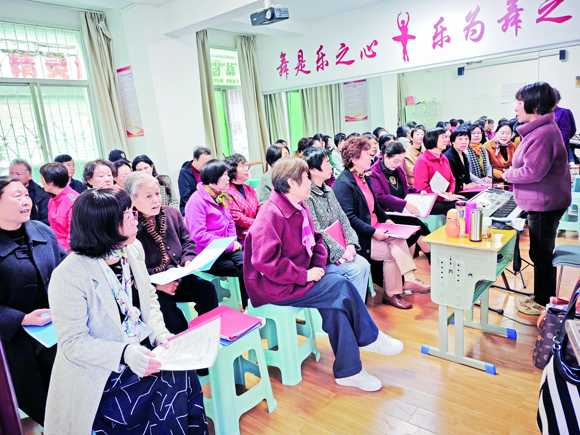 居民在育才社區(qū)老年大學(xué)聲樂(lè)班上課