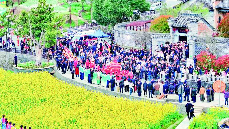 這是一場場景的沉浸。從吳家花屋前的實景演出,將時光拉回湖廣移民開荒鑿田的歲月,到花海漫步騎行,穿行于金黃油菜花與層層梯田交織的畫卷;從灌溉遺產(chǎn)點的實地觀摩,觸摸“田、渠、塘、溪”有機(jī)銜接的古老智慧,到“鳳堰蕓薹宴”與光影燈光秀,在舌尖與視覺中感受鳳堰的夜色之美,晨霧、花海、古屋、燈火,一天之內(nèi),時空流轉(zhuǎn),人在景中,景在心中。