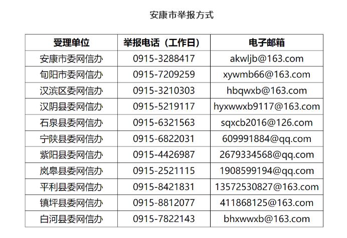 安康“整治‘自媒體’無底線博流量”專項(xiàng)行動(dòng)舉報(bào)方式