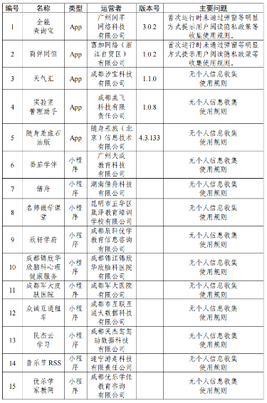 一、全能查詢寶、商伴同恒等15款A(yù)pp無(wú)個(gè)人信息收集使用規(guī)則或在首次運(yùn)行時(shí)未通過(guò)彈窗等明顯方式提示用戶閱讀個(gè)人信息收集使用規(guī)則(詳見(jiàn)下表)。
