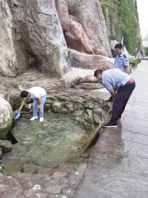 但由于長(zhǎng)時(shí)間的淤泥青苔沉積,導(dǎo)致泉眼堵塞。石上清泉也失去了往日的清新流動(dòng)。9月3日,漢江石泉古城監(jiān)察中隊(duì)帶領(lǐng)古城環(huán)衛(wèi)工人對(duì)石上清泉進(jìn)行疏通清理工作。經(jīng)過(guò)幾個(gè)小時(shí)的努力,工作人員終于將石上清泉淤泥疏通完畢,泉水也恢復(fù)了往日的涓涓細(xì)流。