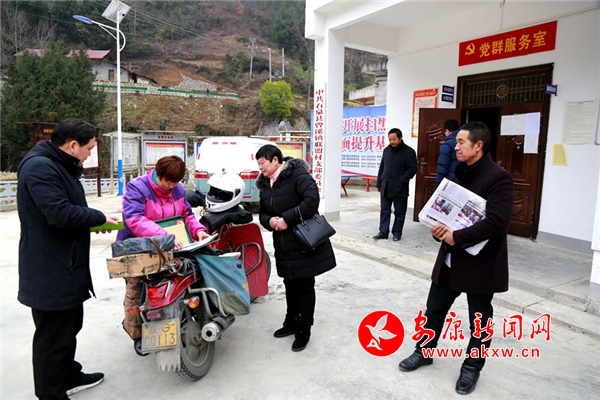 下午3點(diǎn)多走到聯(lián)盟村,趙明翠剛把報(bào)紙送到村上。村醫(yī)葉平菊就熱情地拉著趙明翠的手說:“山里好多群眾都搬到集中安置點(diǎn)安居了!村衛(wèi)生室都專門聘請(qǐng)的有醫(yī)生了!農(nóng)村婦女都能免費(fèi)體檢、免費(fèi)領(lǐng)取相關(guān)婦科藥品了!”趙明翠說:“這要感謝黨和國(guó)家的好政策!”