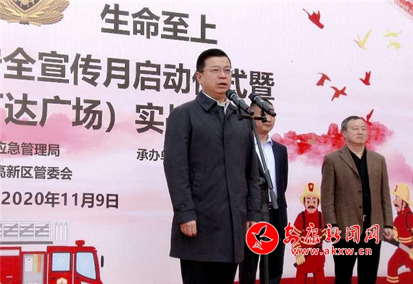 本網(wǎng)訊(記者 魏濤)11月9日是第29個(gè)全國消防安全日,為切實(shí)增強(qiáng)全民消防安全意識(shí),提高全社會(huì)抵御火災(zāi)的能力,掀起消防宣傳熱潮,當(dāng)日上午,安康市全民消防宣傳月啟動(dòng)儀式暨大型商業(yè)綜合體實(shí)戰(zhàn)演練在高新區(qū)萬達(dá)廣場舉行。市委常委、常務(wù)副市長高晶華出席并宣布儀式啟動(dòng)。