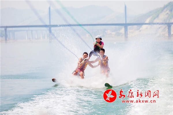 2011年,第十一屆安康龍舟節(jié)開(kāi)幕式上,國(guó)家水上表演隊(duì)亮相漢江。邵向東 攝