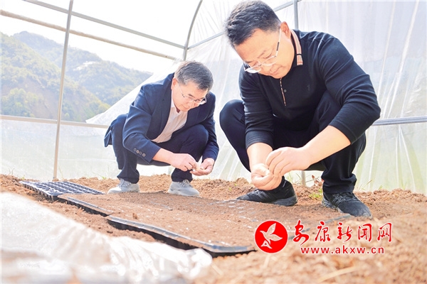 城關(guān)鎮(zhèn)竹林村駐村工作隊(duì)在“一畝實(shí)踐田”中進(jìn)行育苗