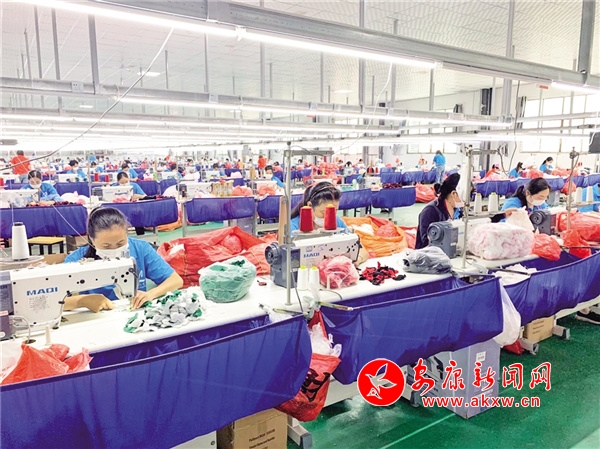 民主鎮(zhèn)社區(qū)工廠的工人們正在縫制產(chǎn)品