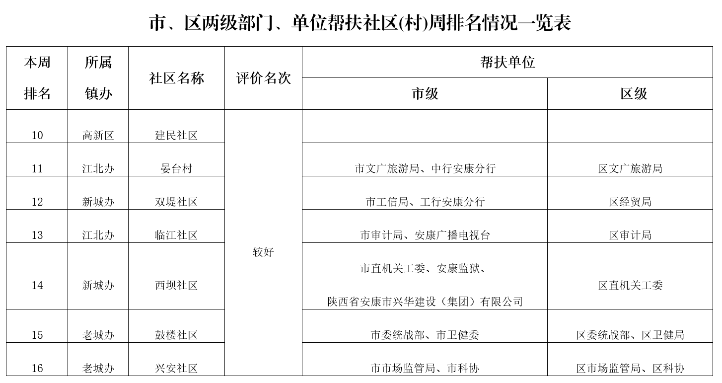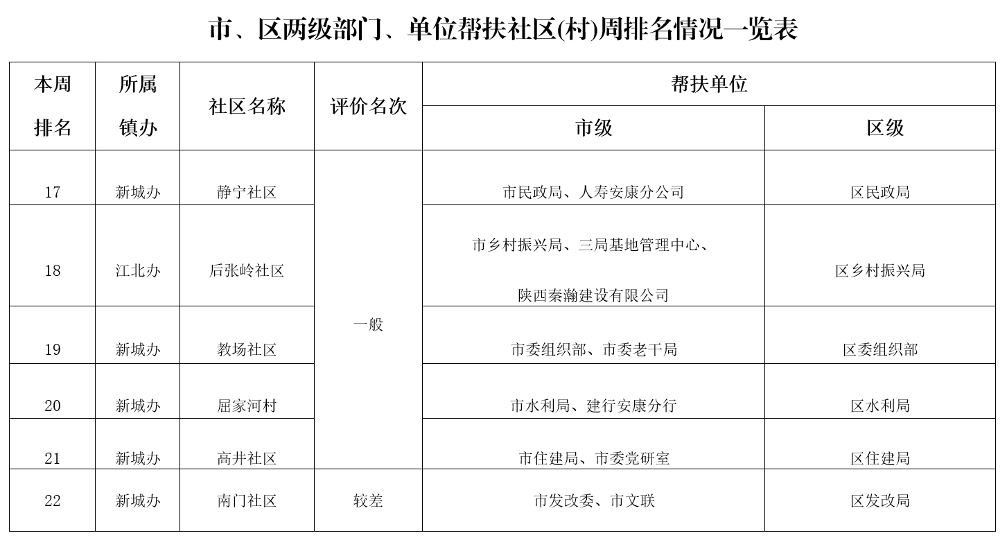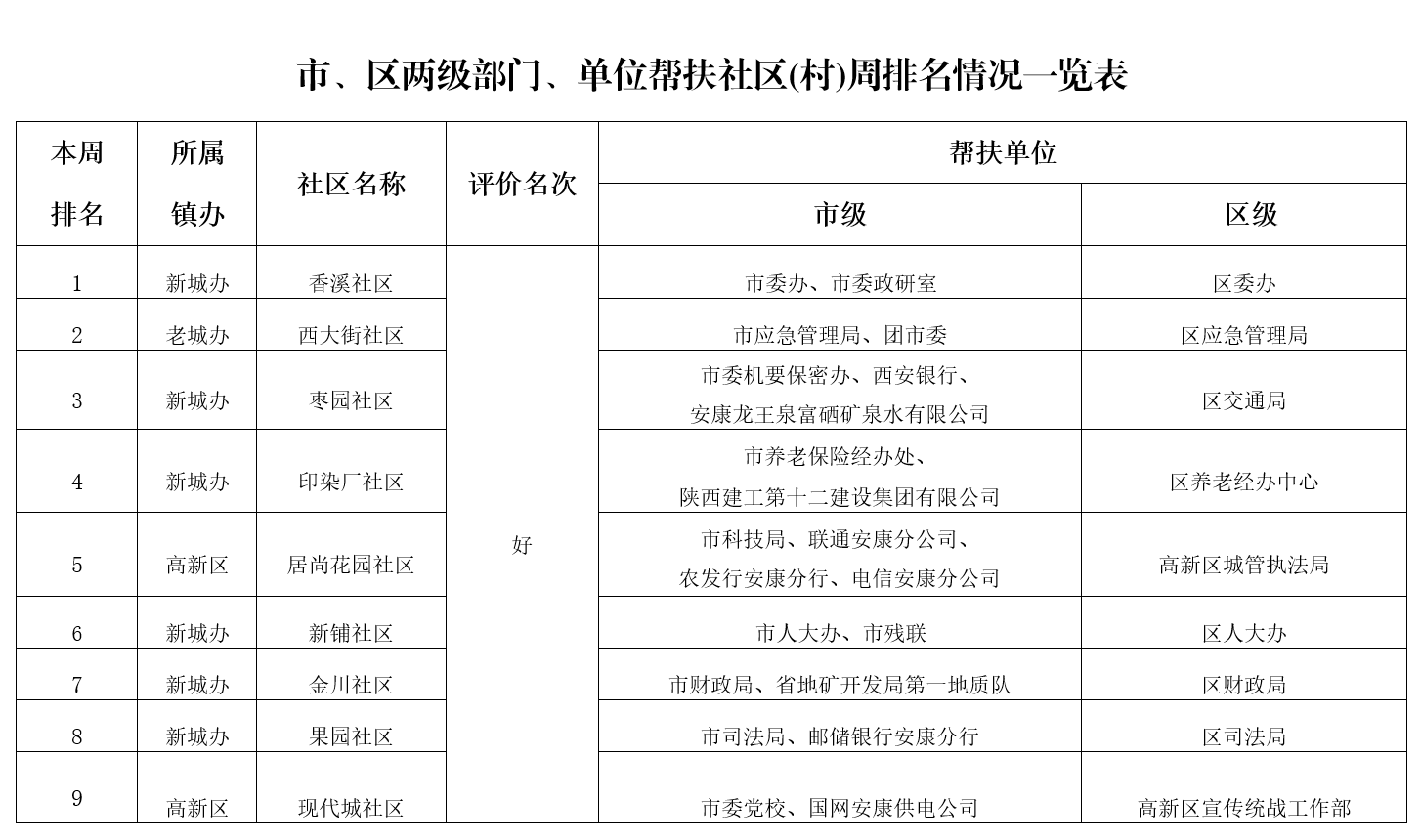 附件:市、區(qū)兩級(jí)部門(mén)幫扶社區(qū)(村)周排名情況一覽表